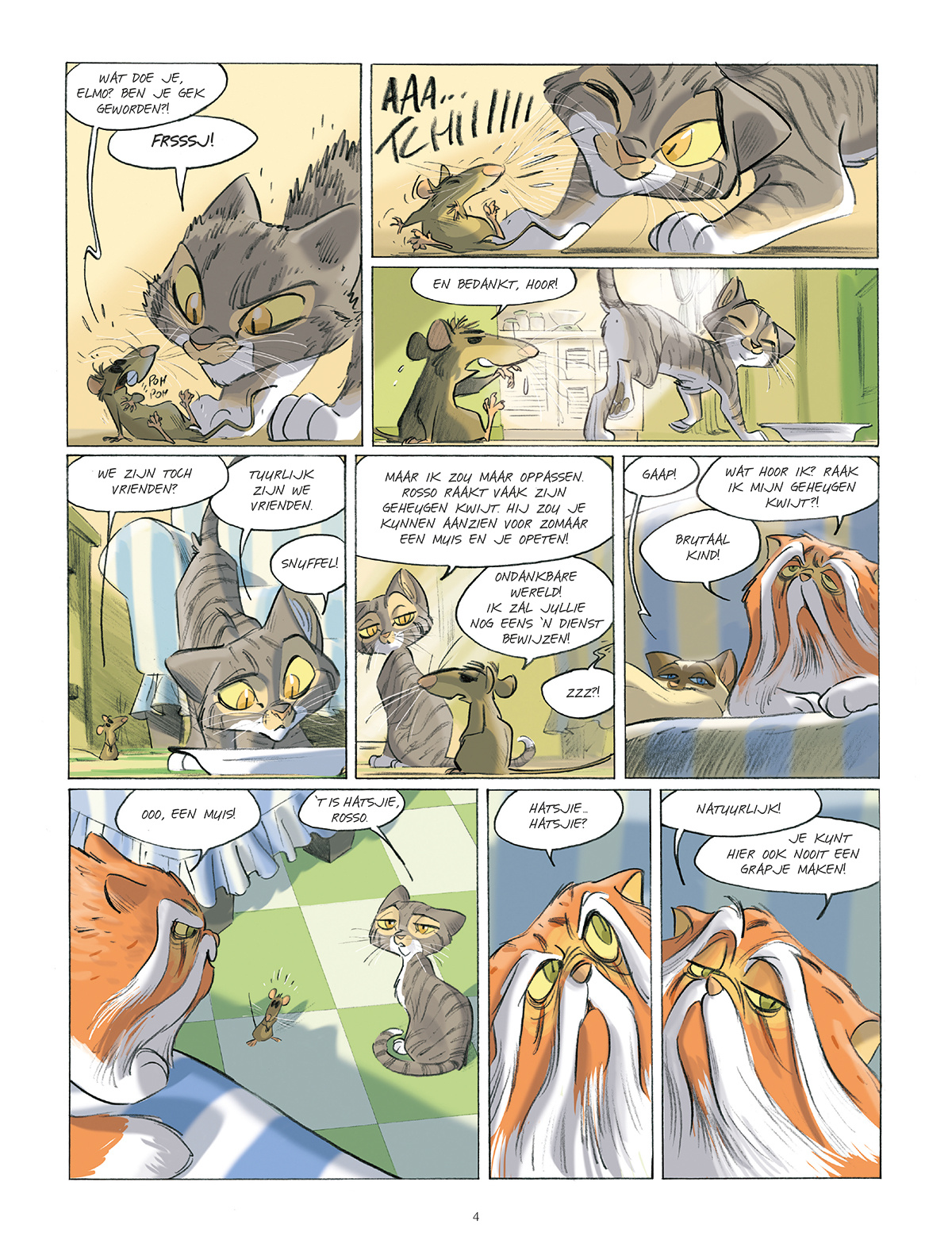 Elmo is een kat... Nog geen volwassen kat, maar ook geen kitten meer... Een jonge kat dus! Hij woont in een huis omringd door bomen, best ver van de stad en dicht bij een boerderij. En hoewel hij droomt van nachtelijke gevechten in het bos, ligt hij ’s nachts gewoon in een mandje. En overdag speelt hij met de zwerfkatten uit de wijk. Een soort luizenleventje dus. Maar dat zal spoedig veranderen...